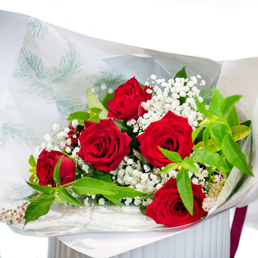 6 Long-Stemmed Red Roses Bouquet (Half Dozen)